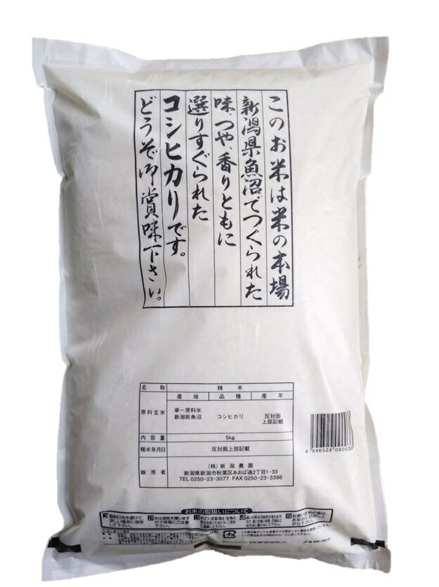 産地名単一原料米 新潟県魚沼 コシヒカリ内容量5保存方法1⃣ 直射日光を避けて、涼しい場所に保存してください 2⃣ 米は湿気を嫌いますので保管にご注意ください 3⃣ 米びつ・容器等は虫等の発生を防ぐためにも、こまめに清掃してください 4⃣ 臭いの移る可能性がありますので、臭いの強い洗剤・灯油などはそばに置かないでください 5⃣ お買い求めの後は、お早めにお召し上がりください特徴【特徴】日本を代表する最良のテロワールから生まれた、香り・味・粘り、すべてがトップクラスの評価で、炊き上がりの艶が違います 【水】越後三山(八海山、中岳、駒ケ岳)からのミネラルを多く含んだ雪解水が、夏の高温時にも土壌の温度上昇を抑え、稲の根に活力を与えます 【土壌】河岸段丘や扇状地に広がる痩せた土壌が、生育過剰を抑制し、おいしさを凝縮させています 【気候】昼夜の温度差が大きい山間部ならではの気候が、米の旨味となるデンプンの夜間消耗を抑えて食味の良いおいしいお米を育てます。