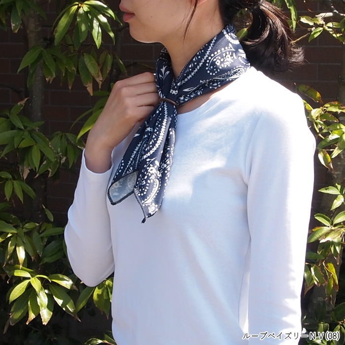 スカーフを巻いて通すだけのスカーフリング付きです。